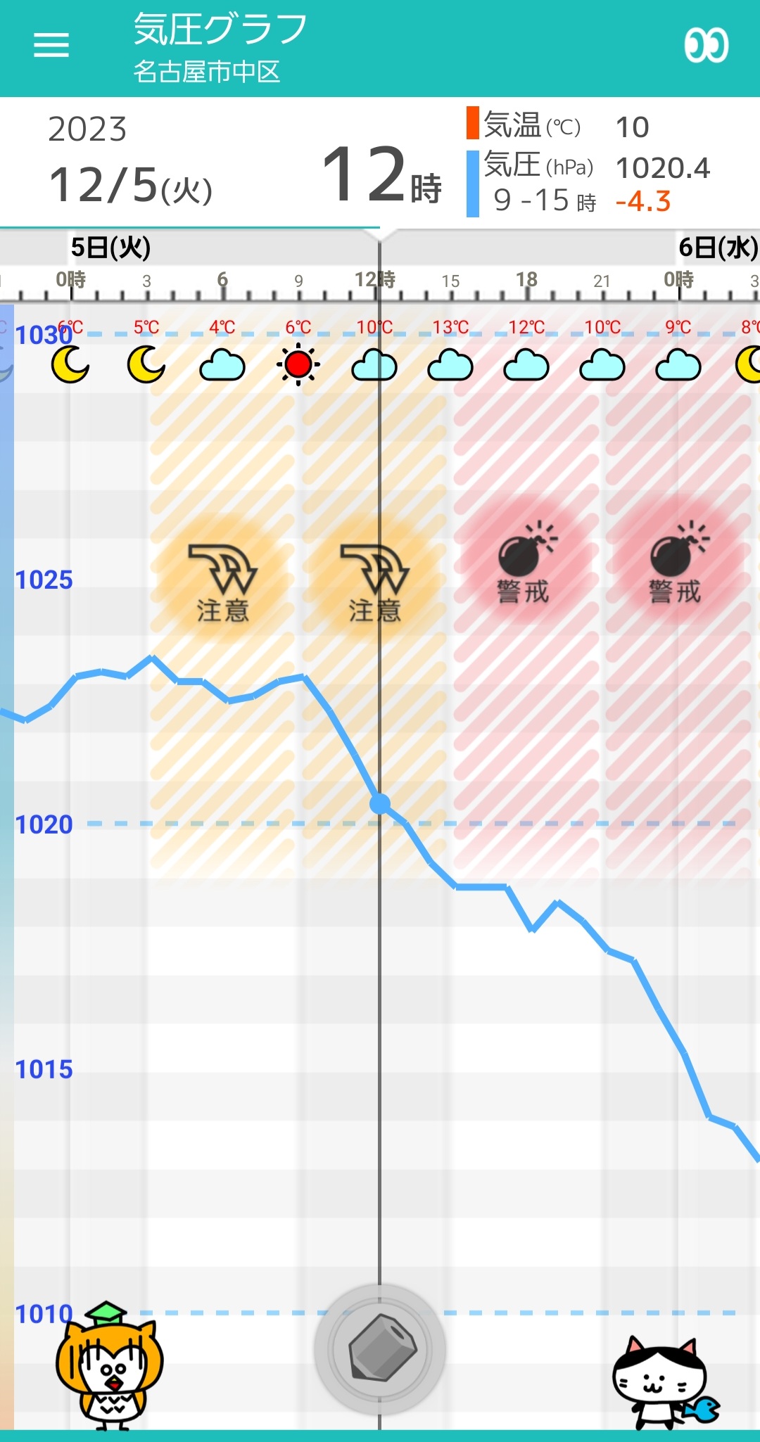 気圧は、昼前から低下し、低気圧の影響で夜は急降下となりそうです。