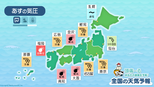 気圧は日中まで安定しますが、夜になると高気圧は次第に離れていき、西日本から大きな低下が始まっていくでしょう。