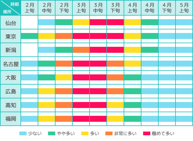飛散時期 関東など2月上旬から飛散開始!ピークは各地で3月!