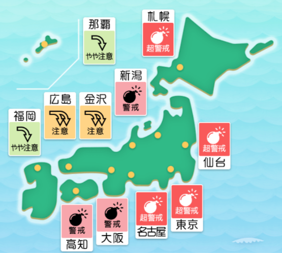 気圧は、全国的に大きく低下し、超警戒レベルのところも!睡眠や栄養をしっかりとって、出来るだけリラックスして無理せず過ごしましょう。