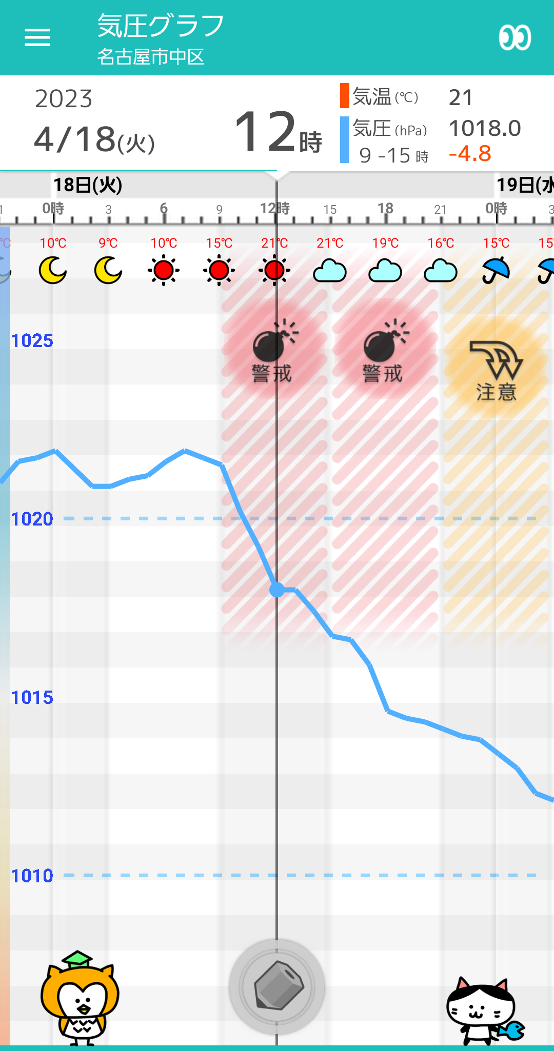 4/18(火) 名古屋の天気頭痛予報 午前は晴れるが、夕方以降は雨も。気圧低下に警戒!