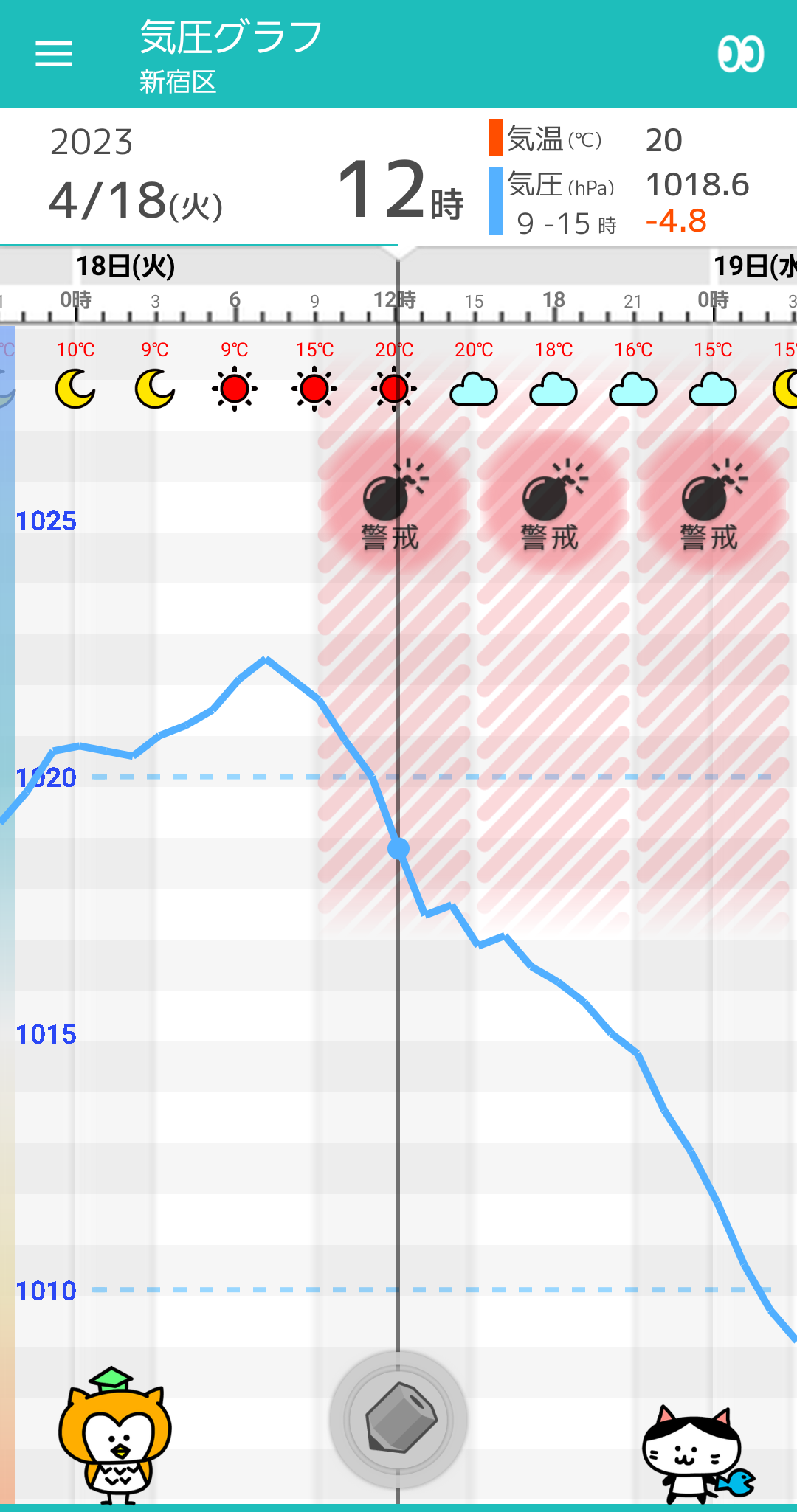 気圧は昼前から急激な低下が続くでしょう。体調の変化に十分にお気を付けください。