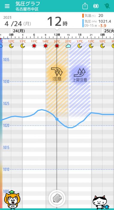 4/24(月) 名古屋の天気頭痛予報 日中に気圧が低下 体調の変化に注意