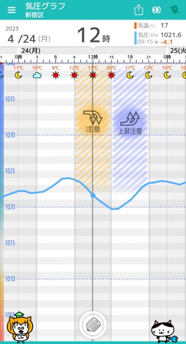 気圧は日中に低下しますので体調の変化に十分注意してください。
