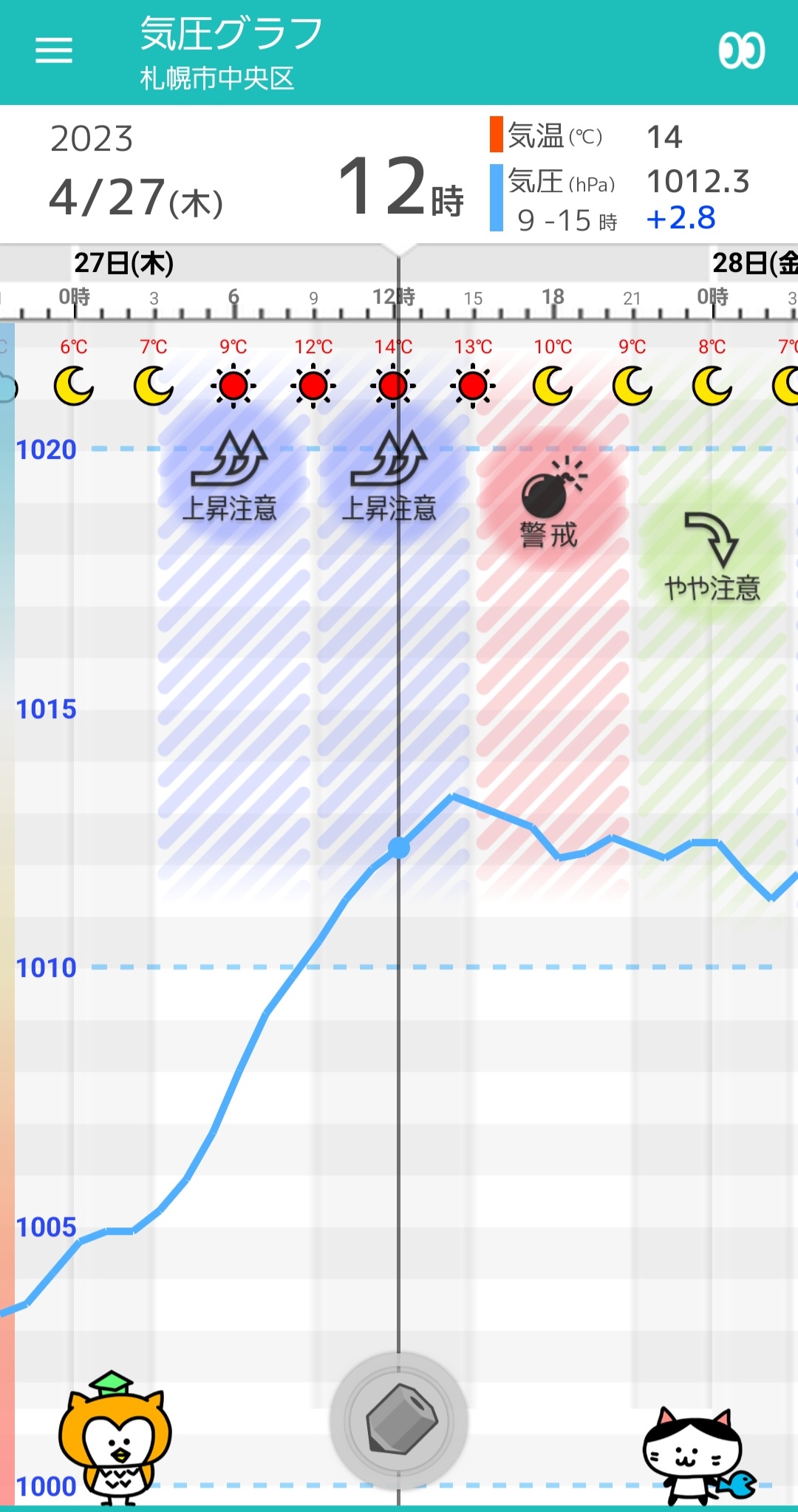 4/27(木) 札幌の天気頭痛予報 青空戻っても風は冷たい。気圧の変動大きい一日!