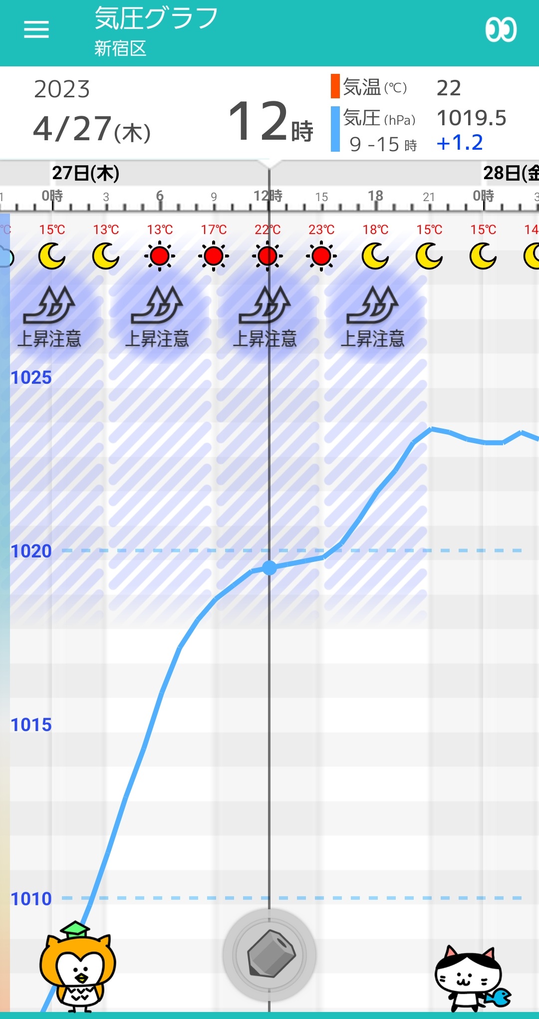 4/27(木) 東京の天気頭痛予報 カラッと晴れて 気圧上昇。UVケアは万全に!
