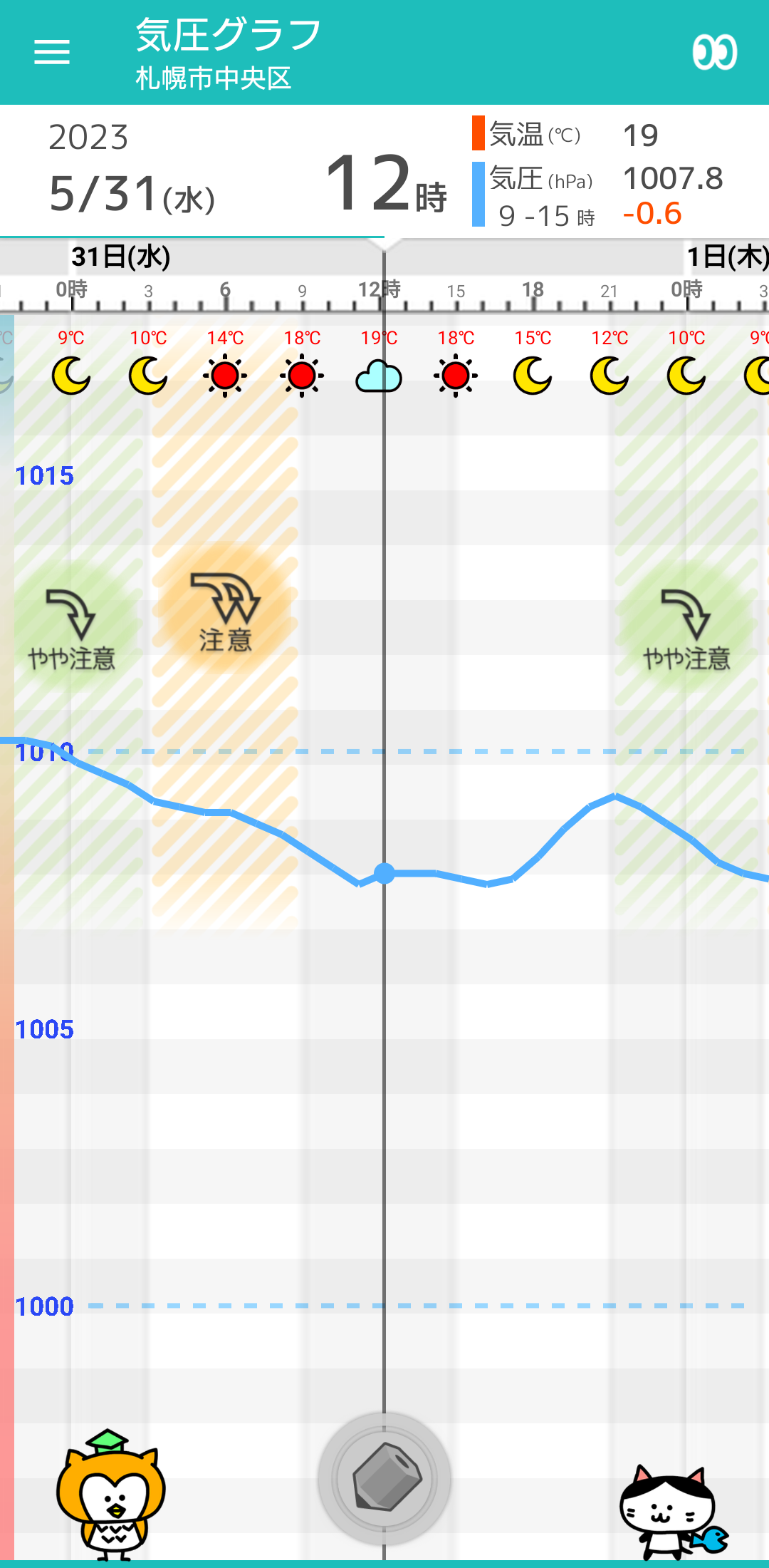 気圧は朝にかけて注意が必要な時間がありそうです。天気の崩れはなさそうですが気圧変化には注意してください。