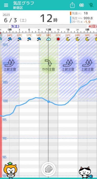 気圧は夕方から上昇が続きますので、気圧の上昇に敏感な人は引き続き体調に注意してお過ごしください。