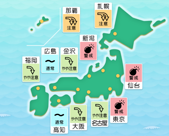 また、先週記録的な雨になった地域では少しの雨でも土砂災害になりますので十分に注意してください。
