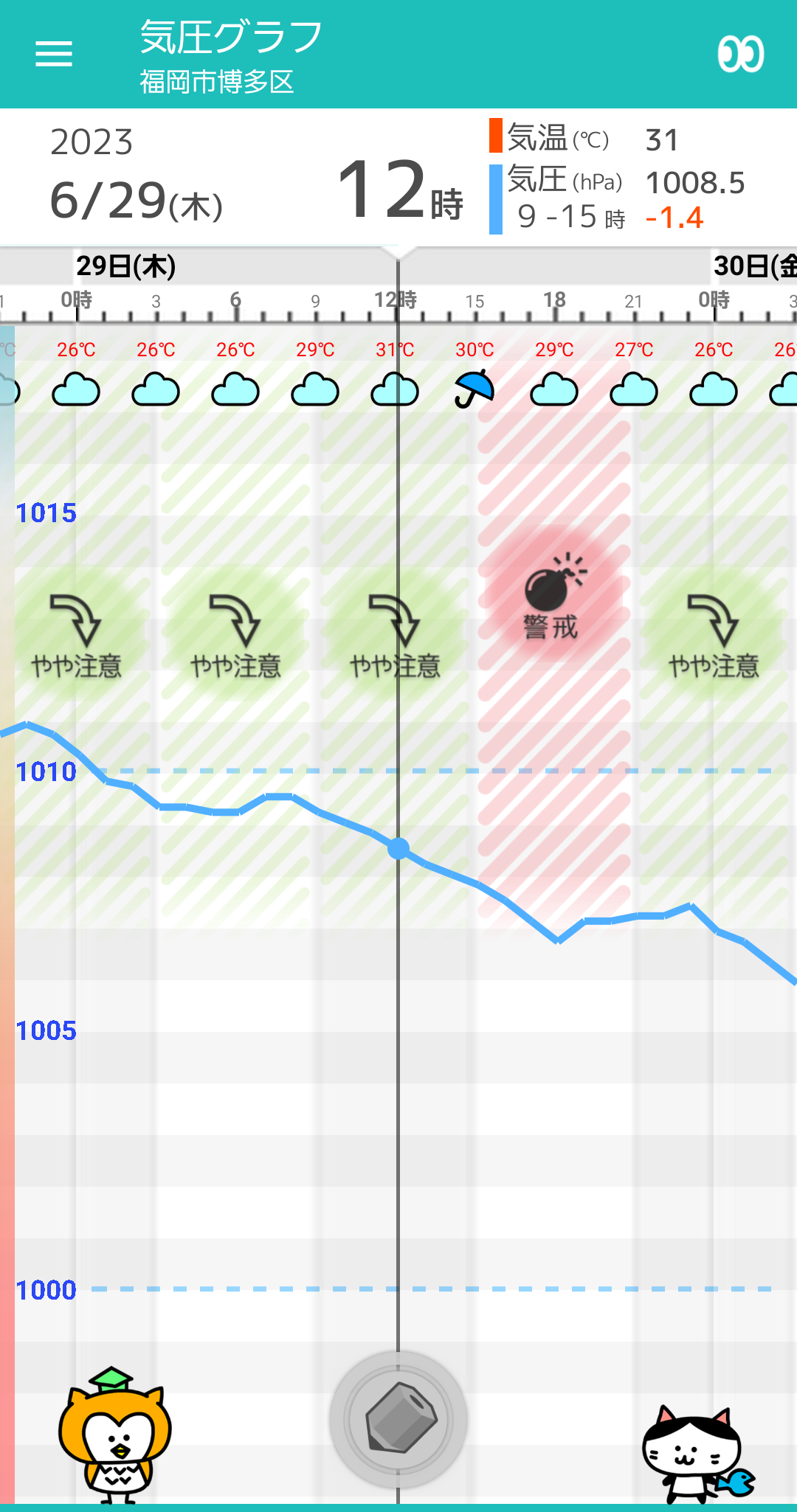 6/29(木) 福岡の天気頭痛予報 雨が降りやすく、雷雨に注意!気圧低下にも注意!
