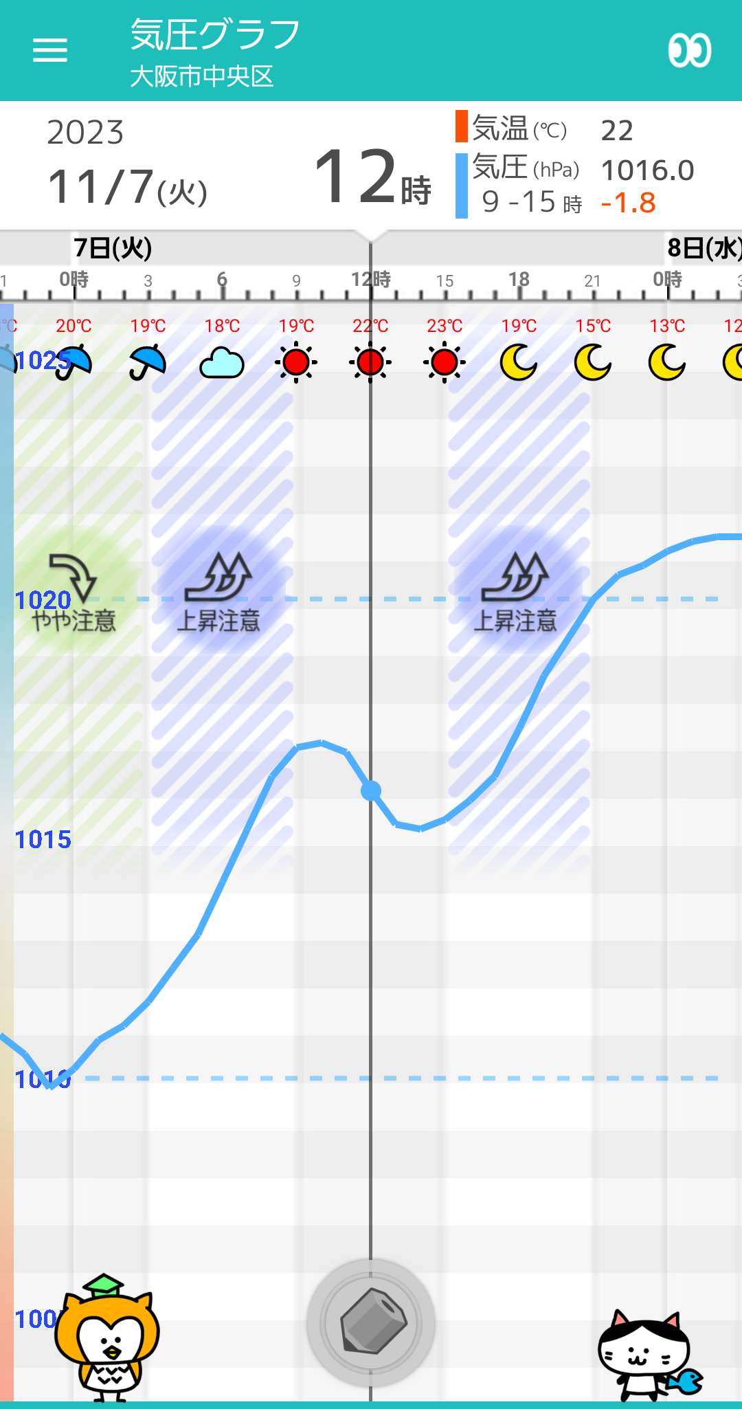 11/7(火) 大阪の天気頭痛予報 明け方まで激しい雷雨に注意!その後は晴れて、気圧上昇