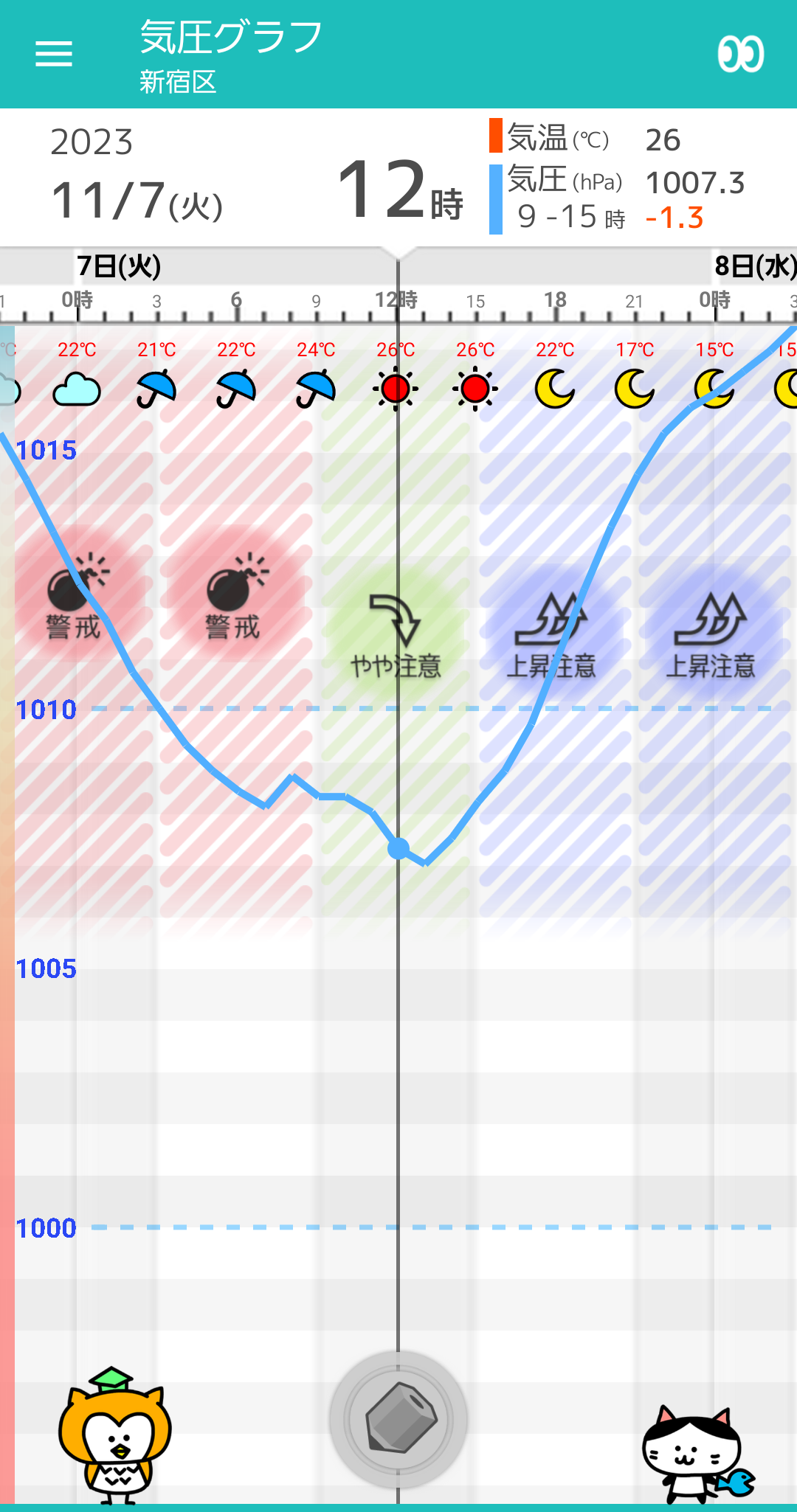 11/7(火) 東京の天気頭痛予報 朝は雨風強まる!気圧変動大きい一日。十分注意を