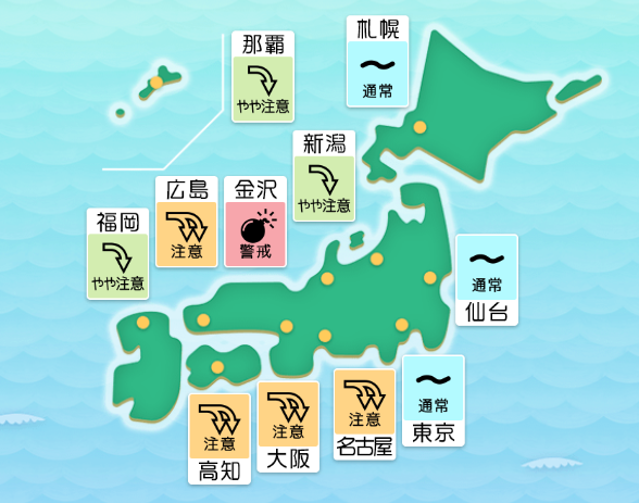 北日本では大きく気温が低下しますので体調に十分注意してください。
