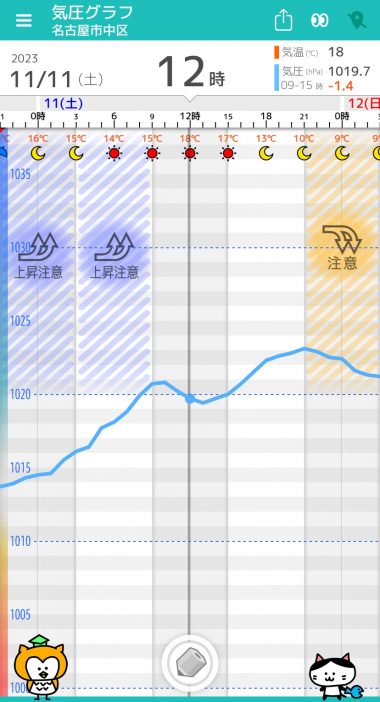11/11(土) 名古屋の天気頭痛予報 晴れるが風がやや強い 夜は気圧低下に注意