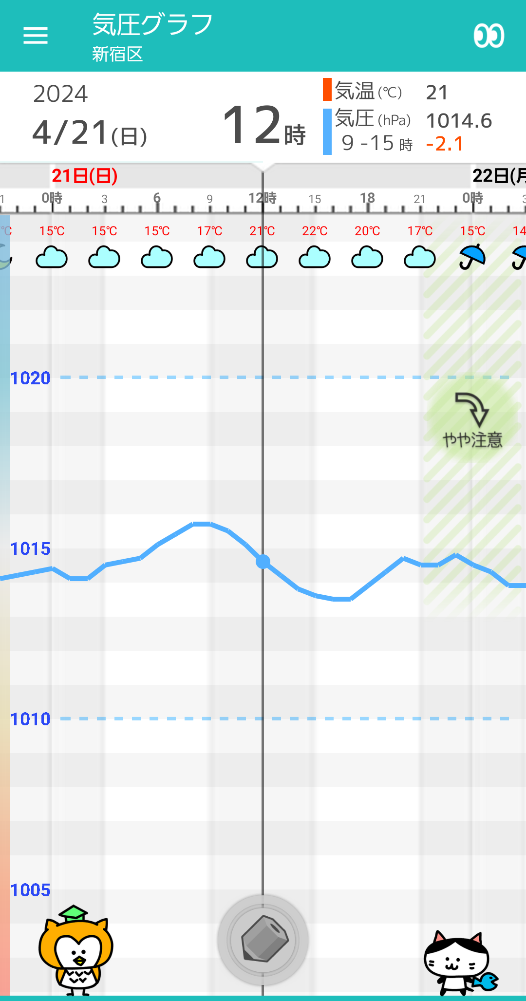 4/21(日) 東京の天気頭痛予報 気圧低下傾向で、夜遅くから雨に。暑さは落ち着く