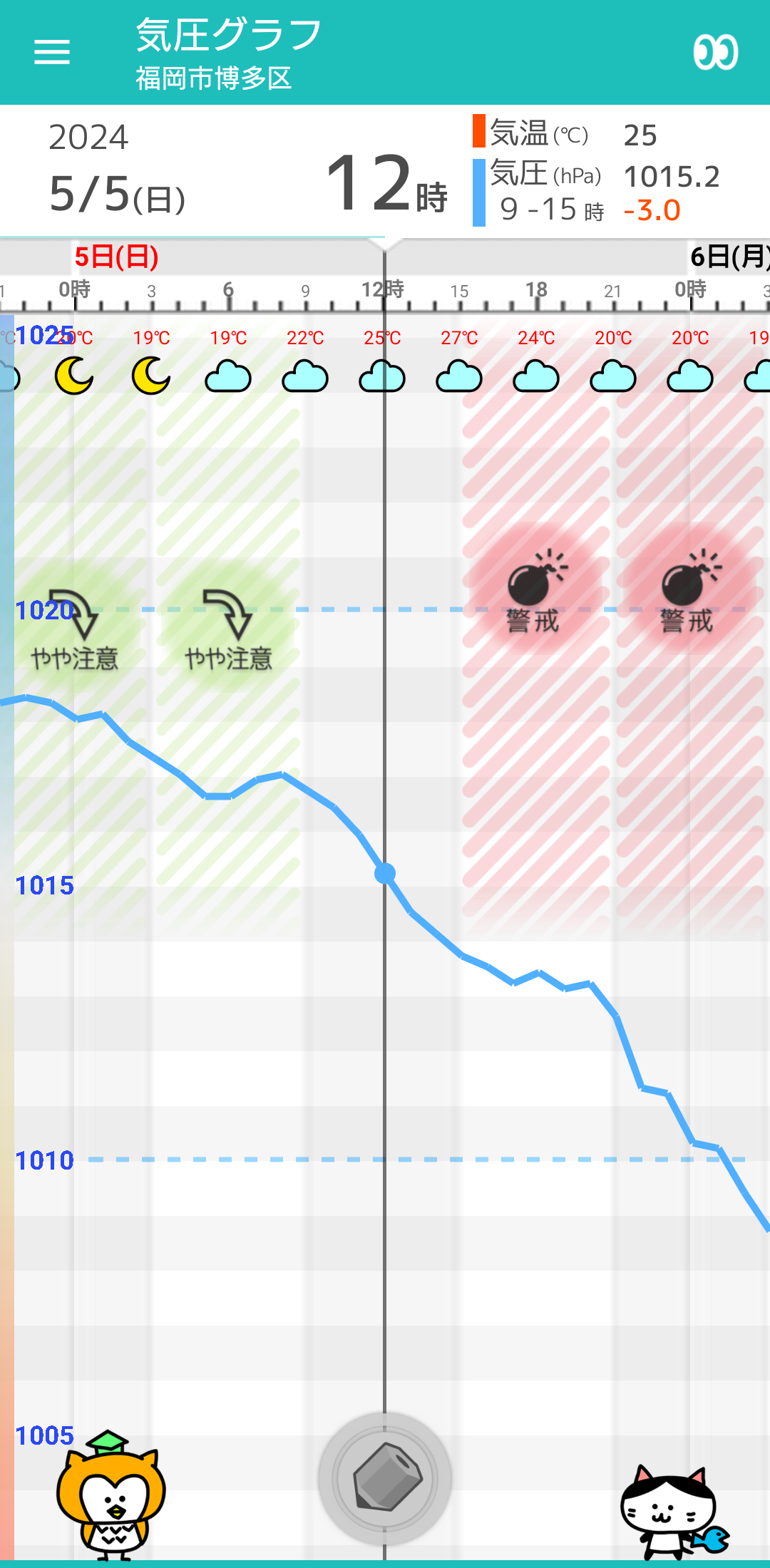 5/5(日) 福岡の天気頭痛予報 天気は下り坂へ。気圧低下も大きく注意