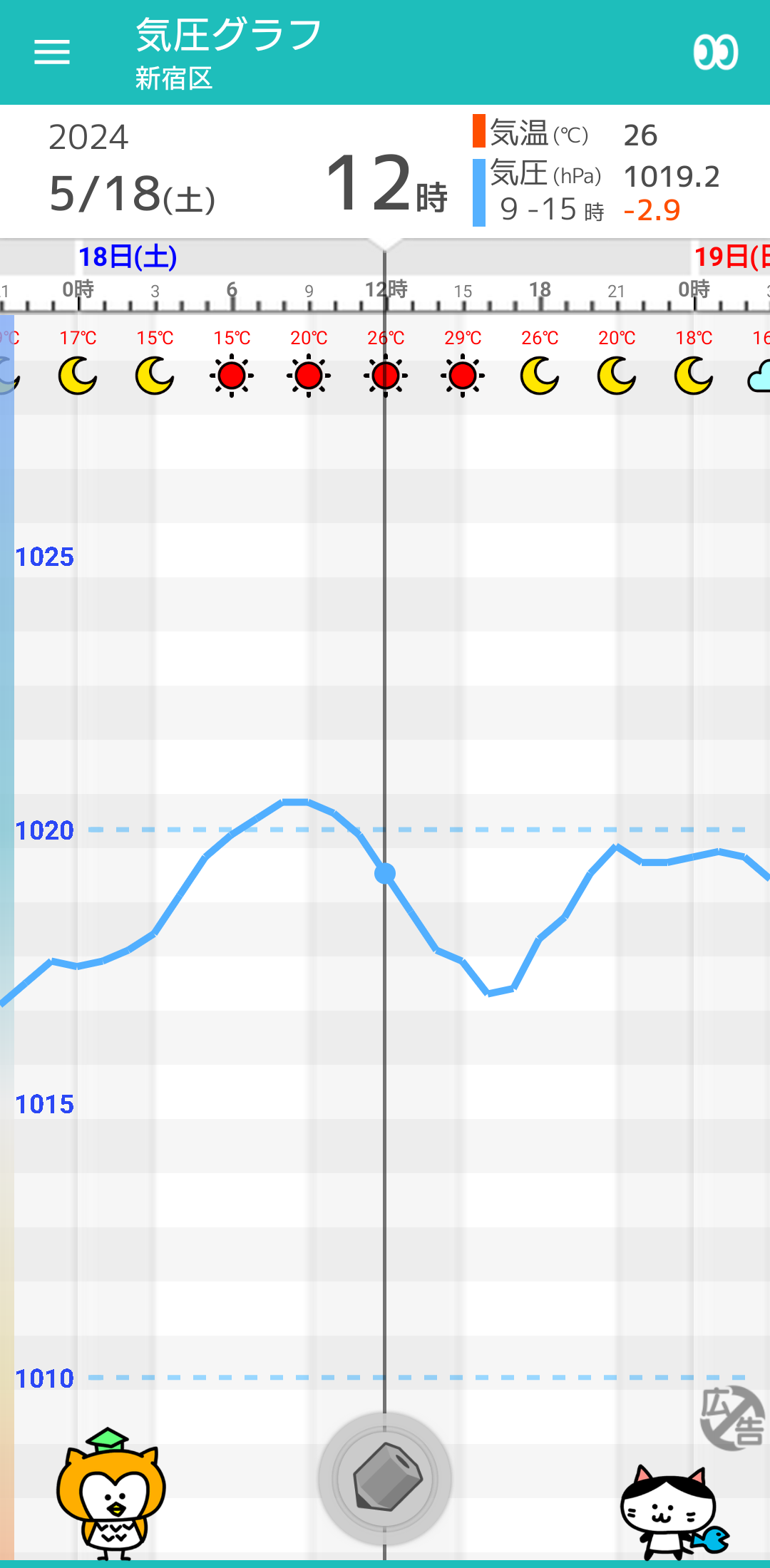 気圧は急激な低下や上昇はなく、通常の変化になる予想です。