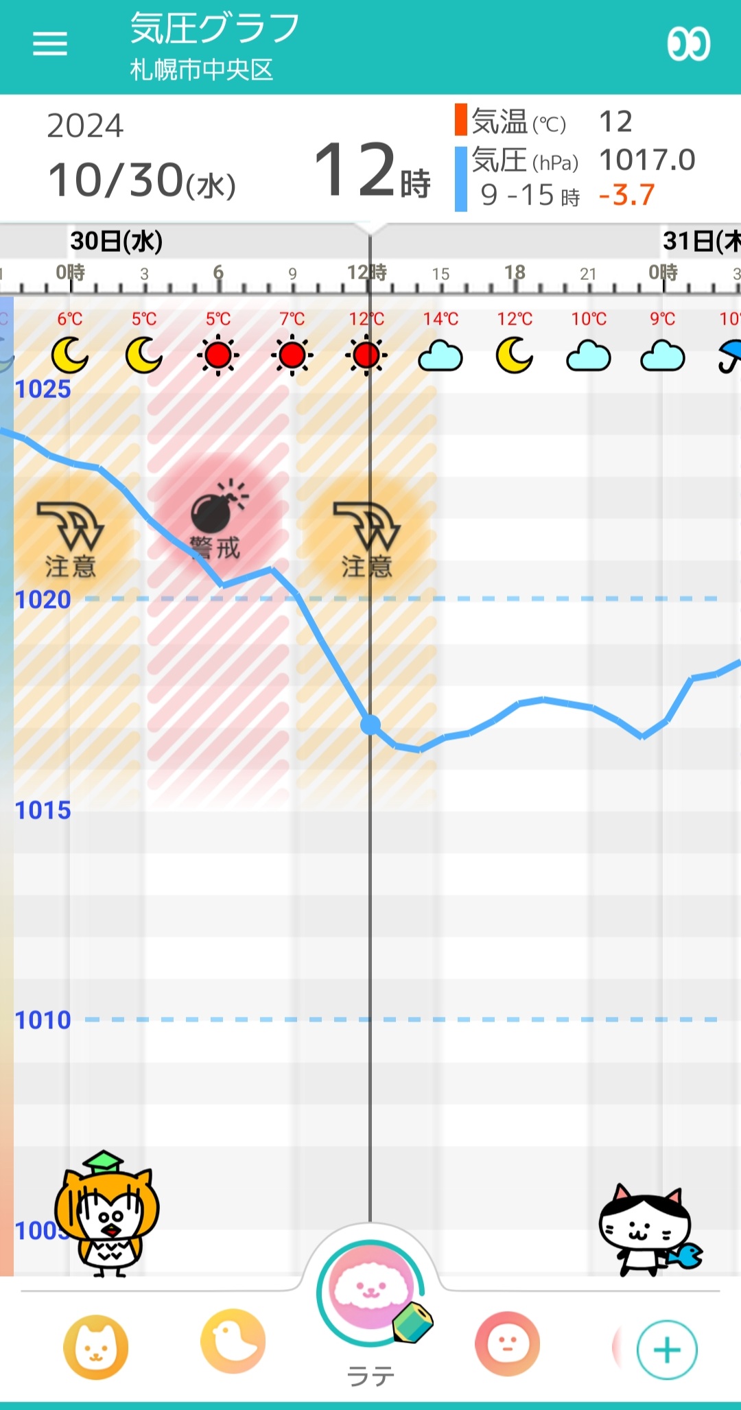 10/30(水) 札幌の天気頭痛予報 日ざしは届いても、気圧は低下!
