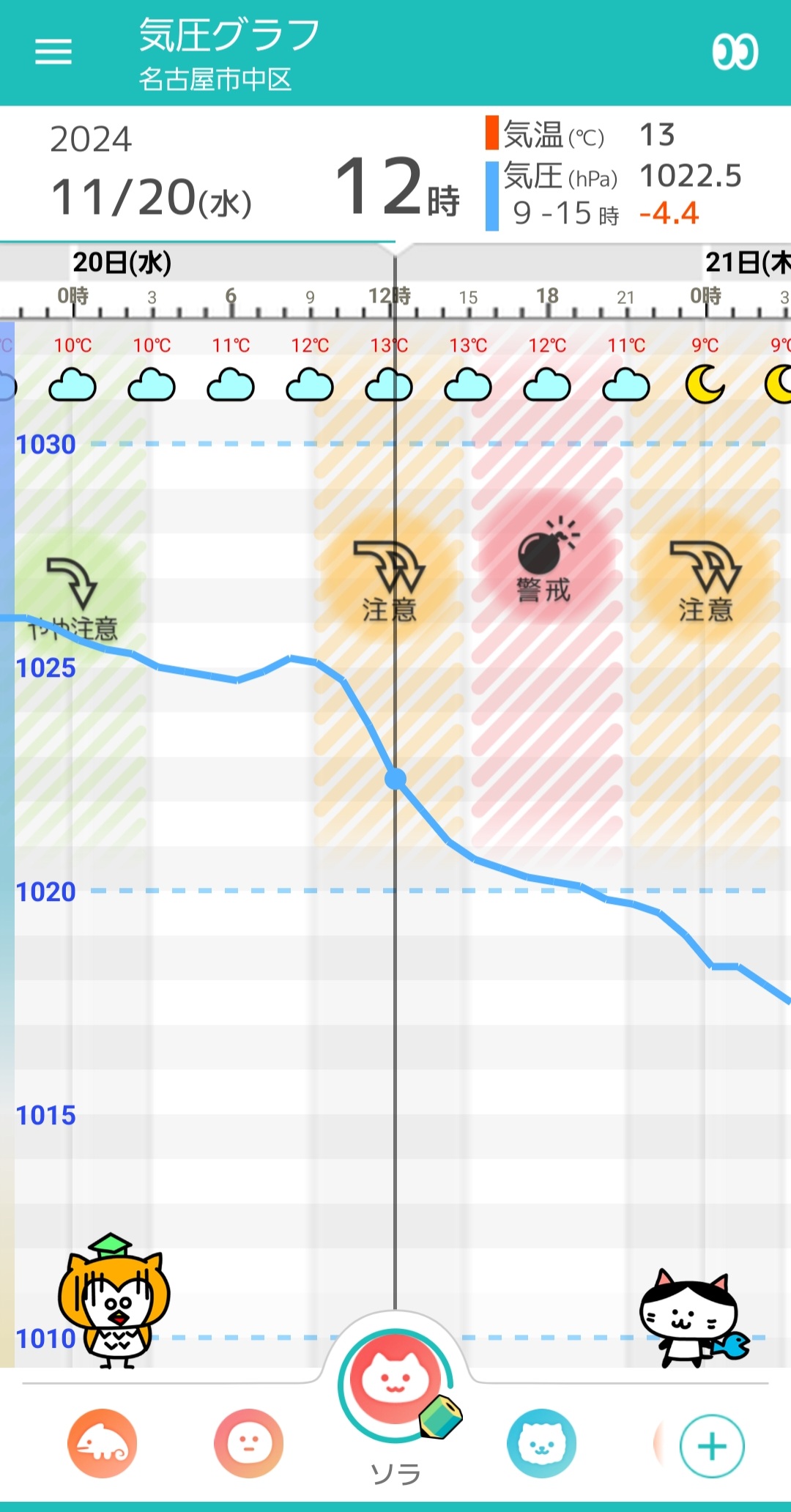気圧は昼前から大きく低下しますので、体調変化にお気を付けください。