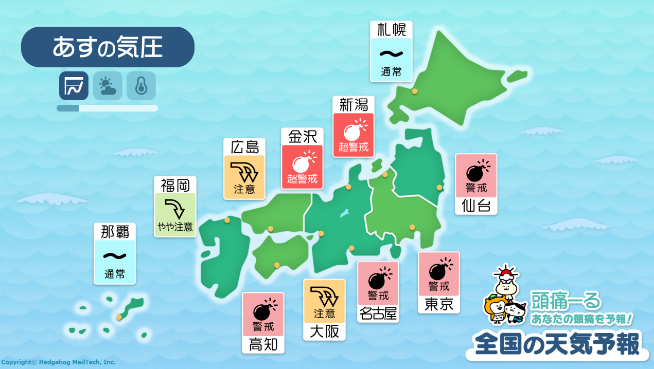 気圧は全国的に大きく低下しますので、体調の変化に十分にお気を付けください。