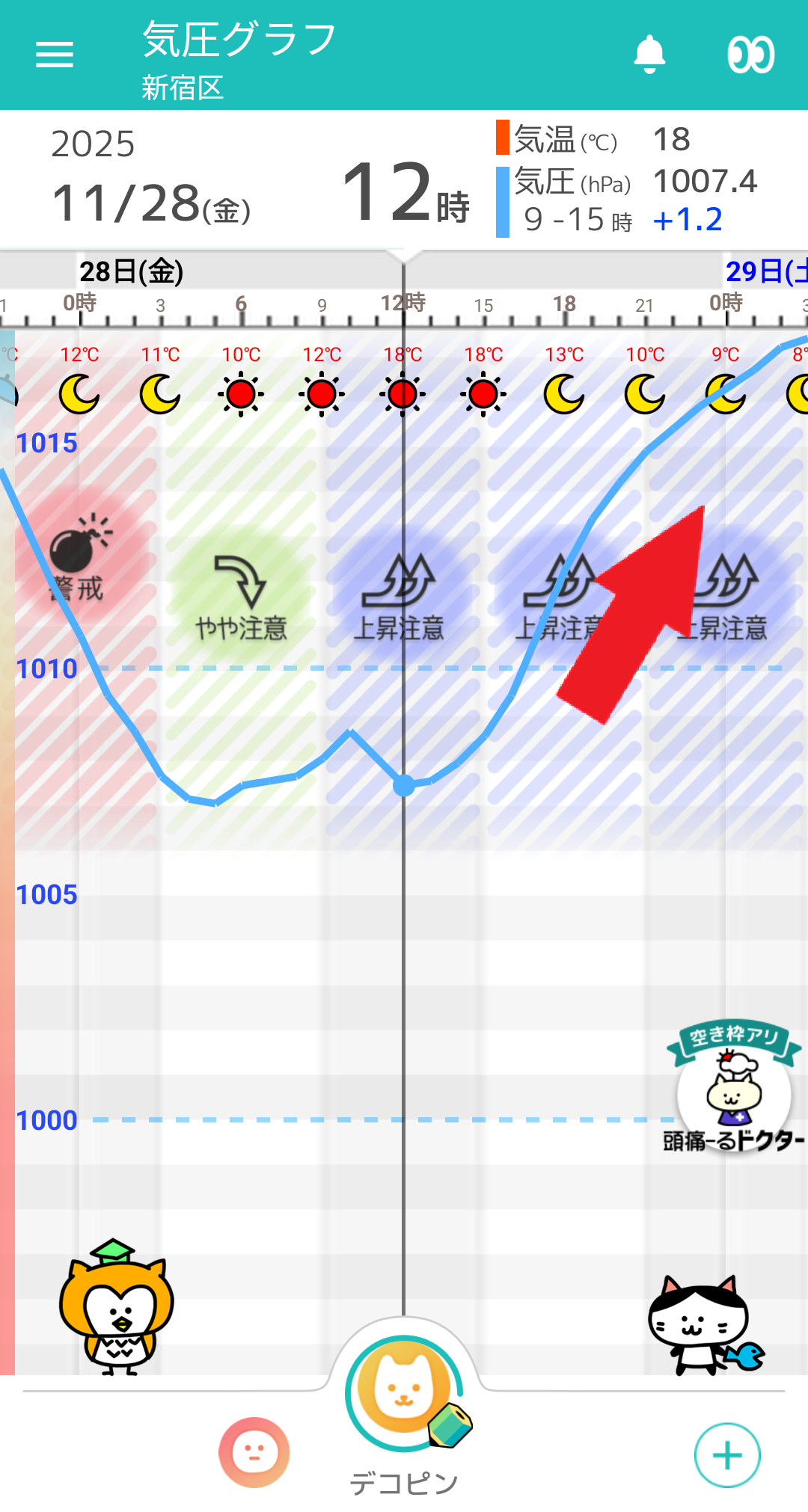 11/28(金) 東京の天気頭痛予報 天気回復し、晴れる。気圧上昇に注意!日中は暖か