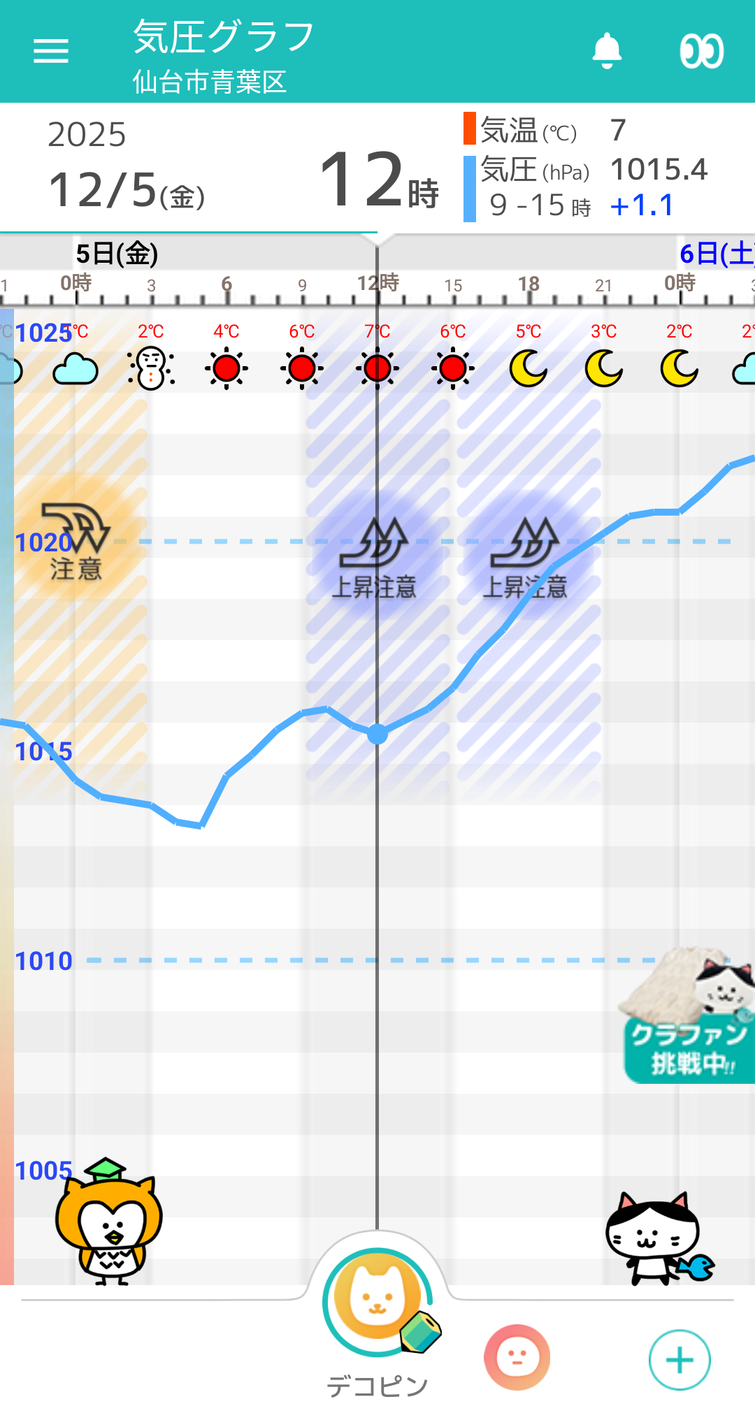 気圧は昼前から夜にかけて、大きな上昇が続きますので、体調の変化にお気を付けください。