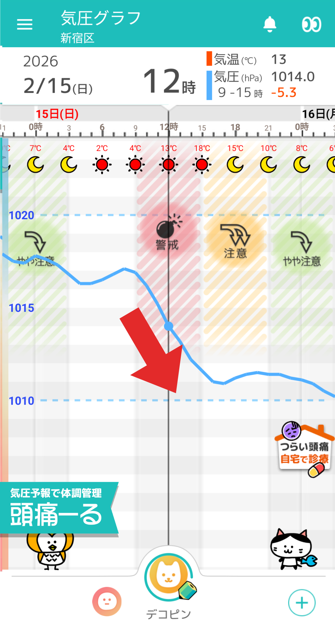毎日の天気頭痛予報 頭痛ーるTOP 毎日の天気頭痛予報2/15(日) 東京の天気頭痛予報 晴れて4月並の暖かさ。寒暖差や気圧低下に注意 2/15(日) 東京の天気頭痛予報 晴れて4月並の暖かさ。寒暖差や気圧低下に注意 2/15(日)の東京: 夜にかけて一日晴れの天気が続くでしょう。 ただ気圧はお昼前から大きな低下が続くようになりますので、晴れていても無理をせずにお過ごしください。 日中の最高気温は18℃予想。前日よりもさらに上がって、4月並の春本番の暖かさとなりそうです。 朝は2℃前後まで冷え込む可能性がありますので、一日の寒暖差にはご注意ください。 ◆他の地域の天気頭痛予報はこちら 全国 仙台